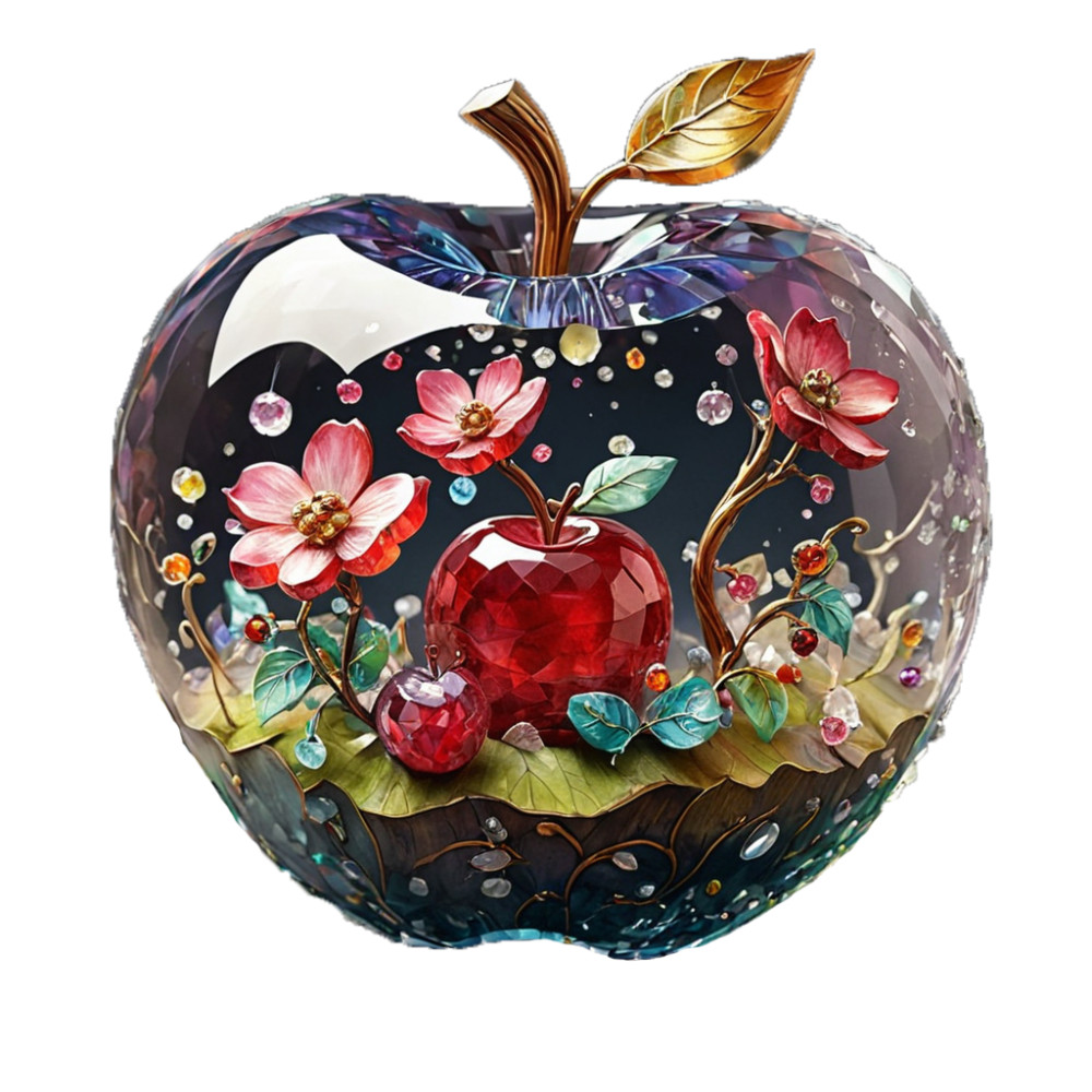 Kristályalma virágokkal, alma formájú ablakmatrica 4
