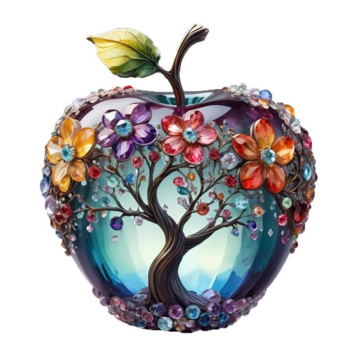 Kristályalma virágokkal, alma formájú ablakmatrica 5