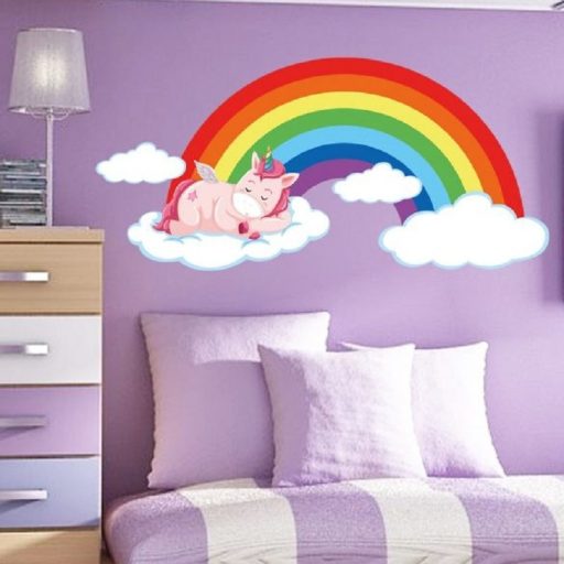 Alvó póni a szivárványos égen, gyerekszoba falmatrica