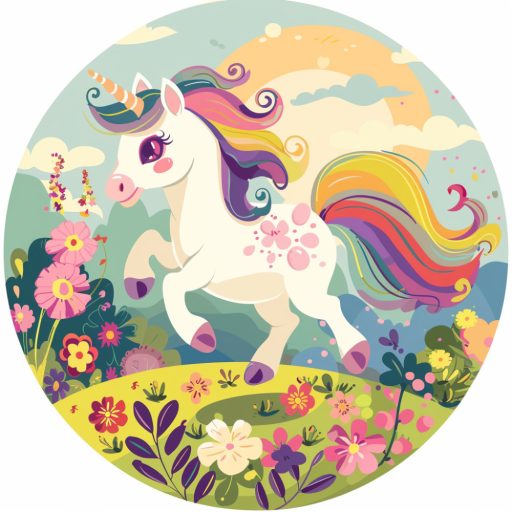 Boldog kis unikornis, kör alakú falmatrica gyerekszobába