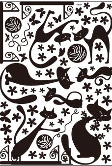 Az íven összesen 70 db matrica van, a bal oldali cica mérete 31,5 x 17 cm, a jobb oldali cica 28,5 x 21 cm az 50 x 70 cm-es ív esetén
