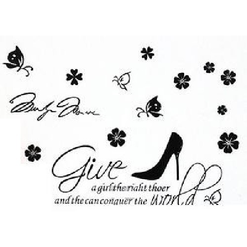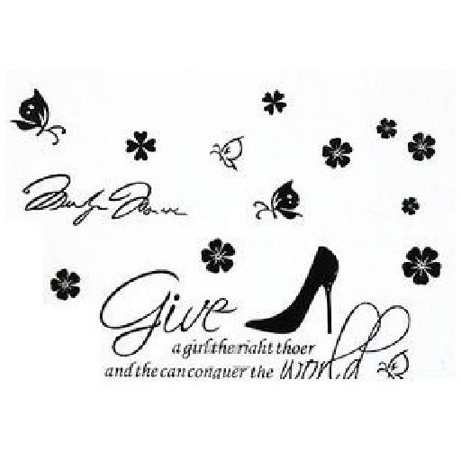 Cipellő, falmatricaAz íven 1 db cipő (18 x 17 cm), 9 db virág (átmérőik 3 - 7 cm közöttiek), 4 db pillangó (méreteik 11 x 8,5 cm - 6,5 x 7,5 cm közöttiek), és a felirat matricák vannak