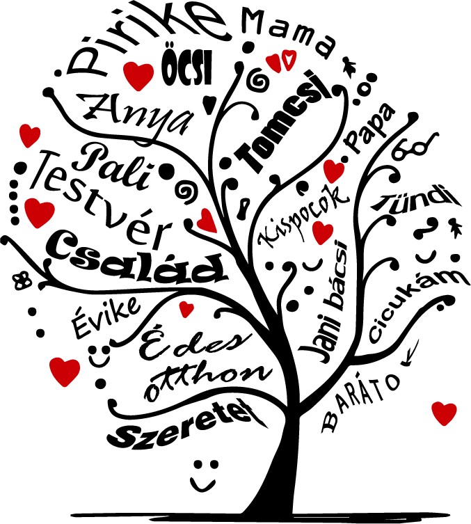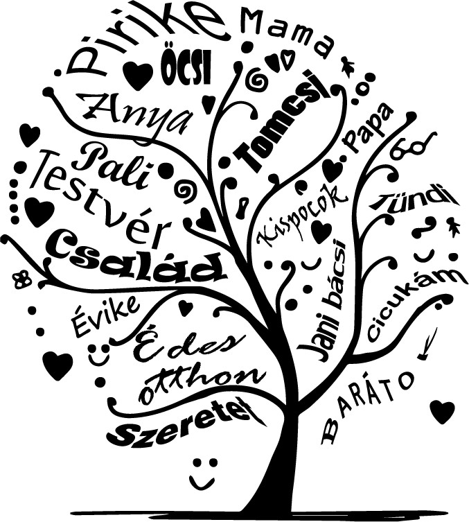 Családfa egyedi nevekkel, falmatrica