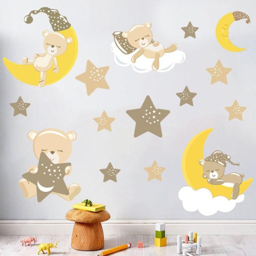Csillagok között alvó mackók, festett hatású falmatrica gyerekeknek