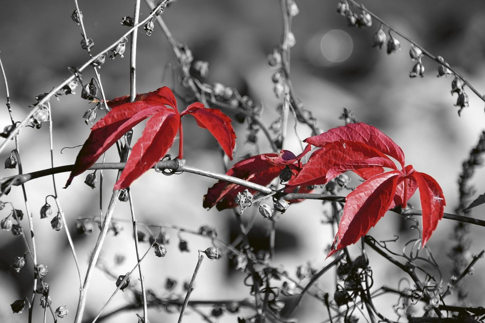 Őszi falevelek fekete fehér háttér előtt, poszter tapéta
