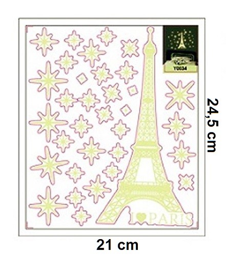 Eiffel torony csillagokkal, éjjel világító falmatrica