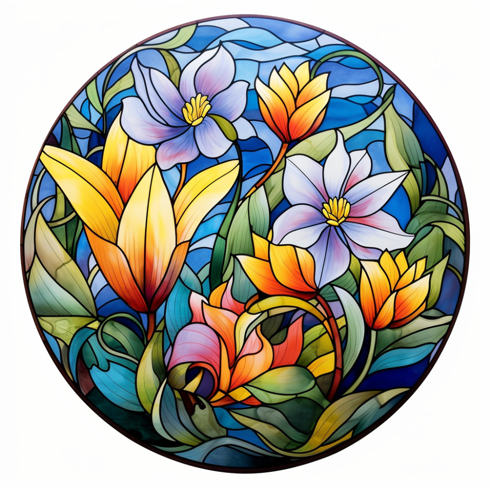 "> Élénk színű virágok, ólomüveg hatású ablakmatrica - Öntapadó