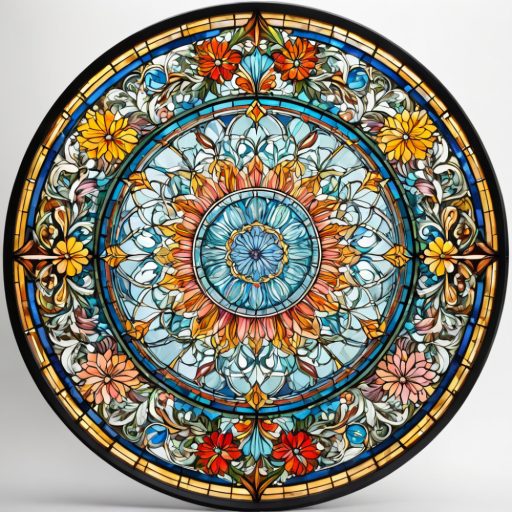 Élénk virágok körben, ólomüveg hatású ablakmatrica