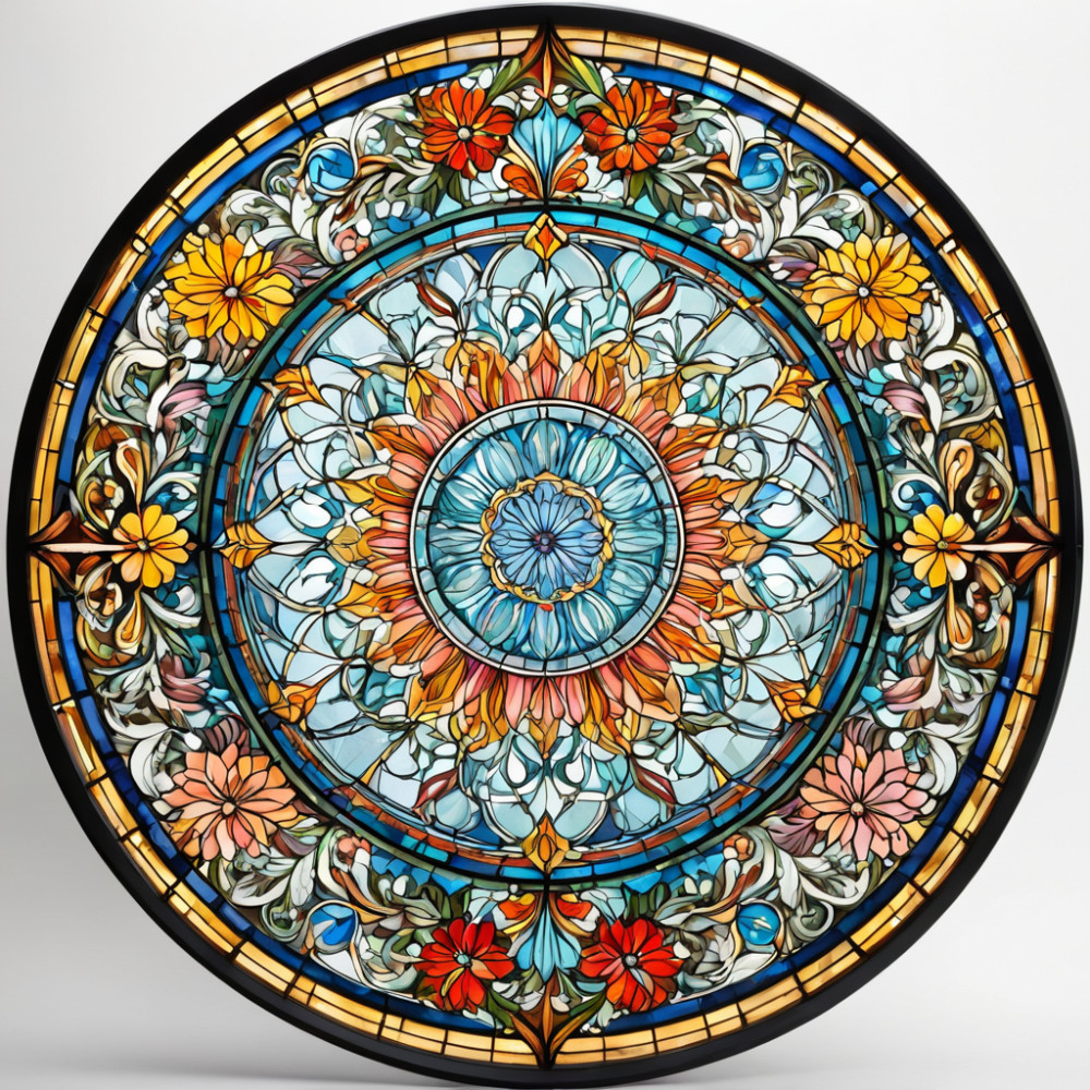 "> Élénk virágok körben, ólomüveg hatású ablakmatrica - Öntapad