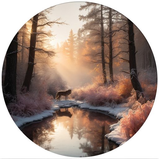 "> Farkas a ködös erdő patakjánál, falmatrica - Öntapadós Dekor