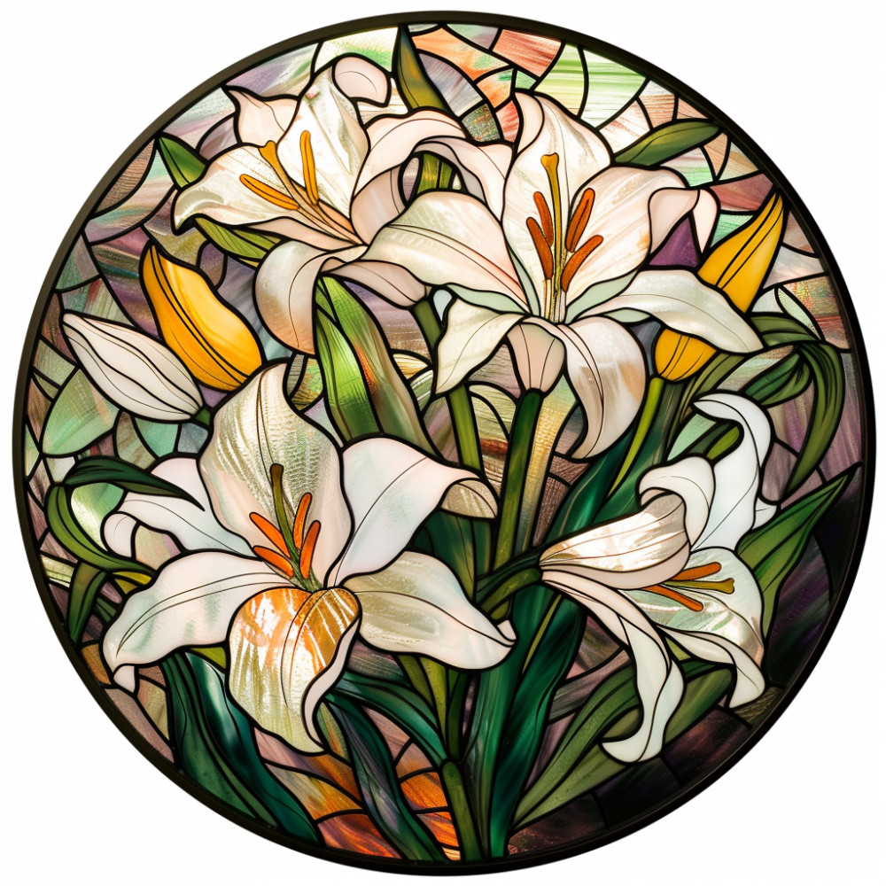 Fehér liliomok, ólomüveg hatású ablakmatrica