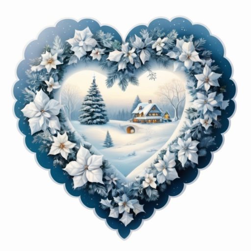 Fehér mikulásvirágos téli tájkép, ablakmatrica