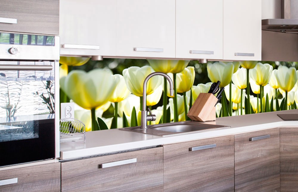 "> Fehér tulipánok, konyhai matrica hátfal, 260 cm - Öntapadós