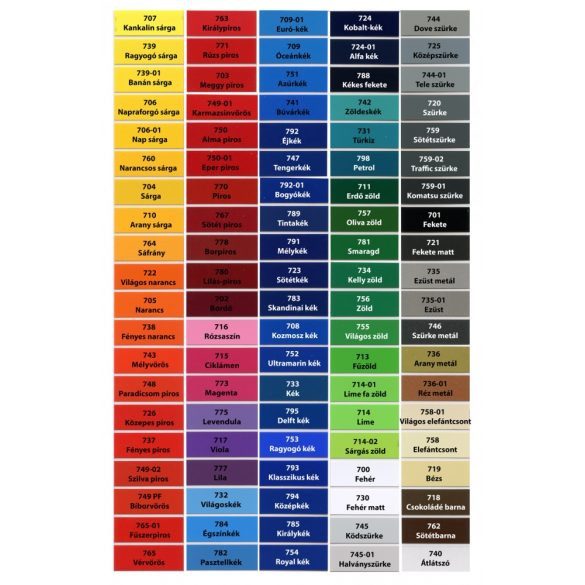 Élettartam: fekete/fehér 8 év, színesek 7 év, metál 5 év, fényvisszaverő 5 év