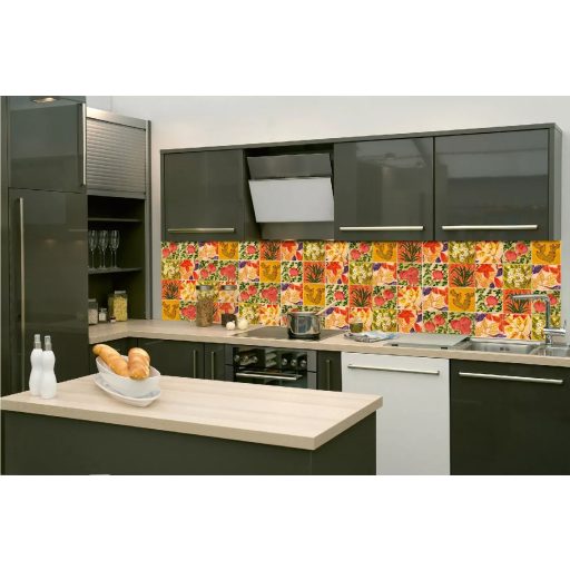 Festett csempeminta, konyhai matrica hátfal, 260 cm
