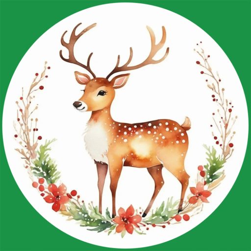 Festett kisszarvas, karácsonyi ablakmatrica