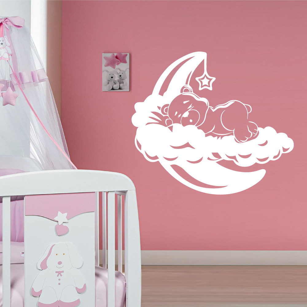 Holdon szundikáló kis mackó, gyerekszoba falmatrica