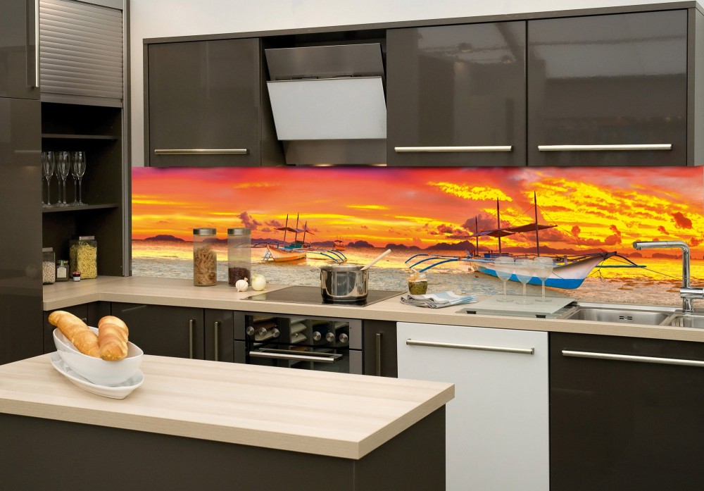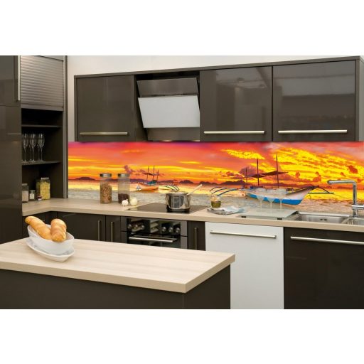 "> Hajók naplementében, konyhai matrica hátfal, 260 cm - Öntapa