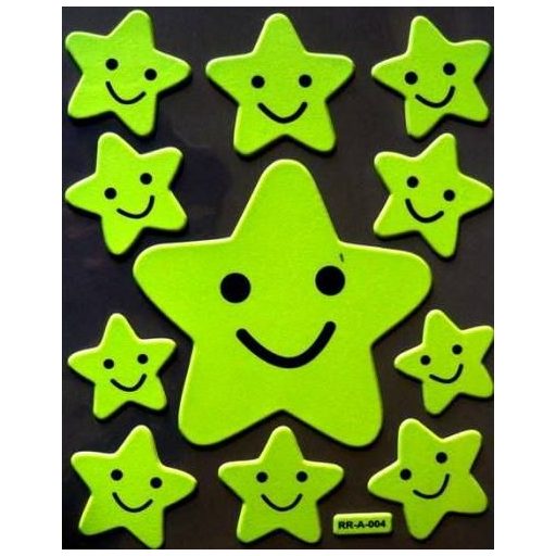 Happy csillagok, éjjel világító dekormatricaAz íven összesen 11 db matrica van, átmérőik 5 - 13,5 cm közöttiekDekorálható velük bármilyen sima felület (fal, ablak, tükör, bútor, stb.)