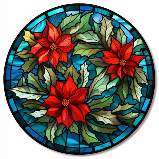 Három piros mikulásvirág, ólomüveg hatású ablakmatrica
