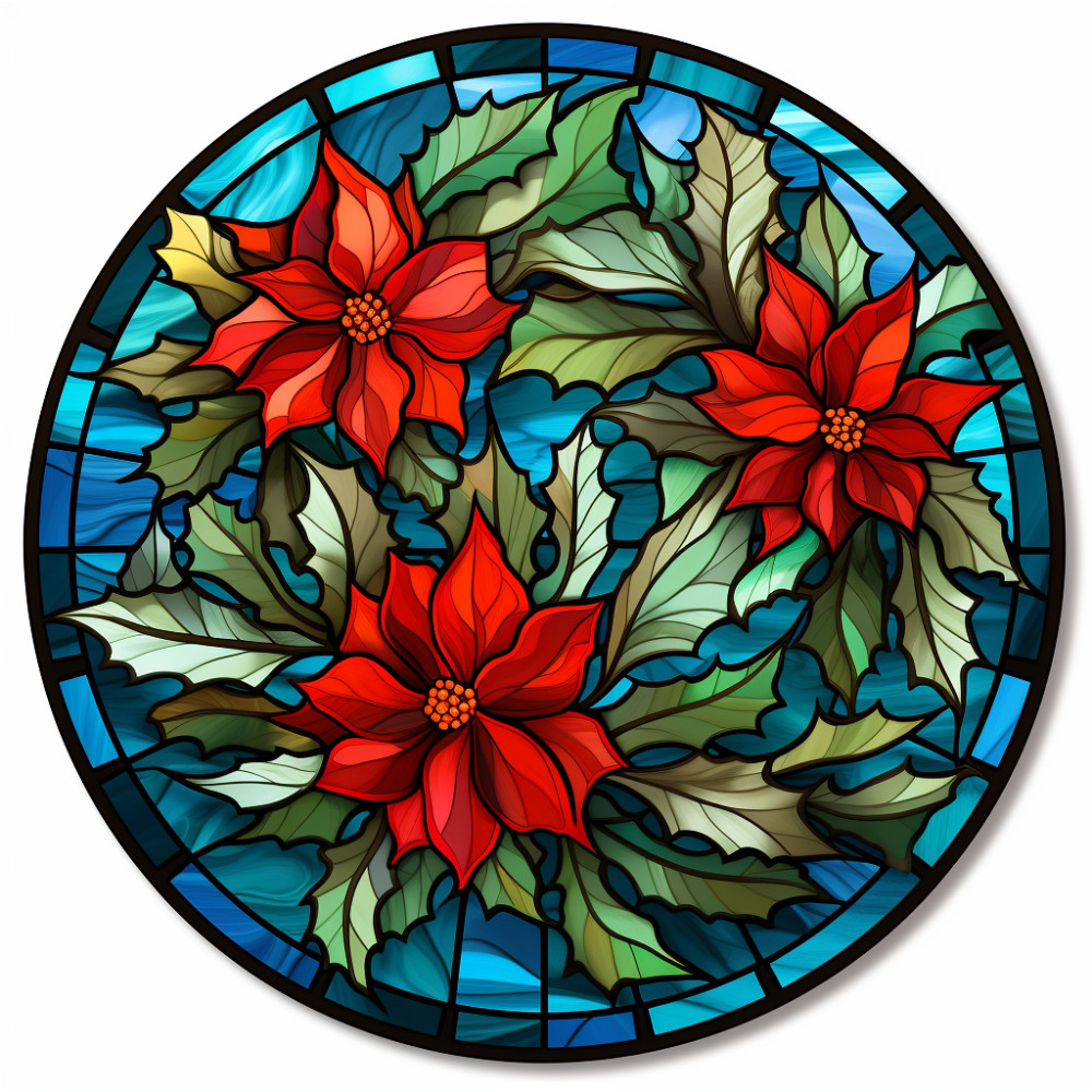 "> Három piros mikulásvirág, ólomüveg hatású ablakmatrica - Önt