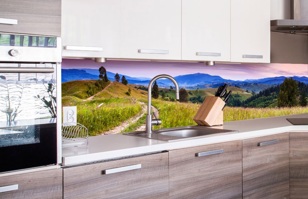 "> Hegyek naplementében, konyhai matrica hátfal, 260 cm - Öntap