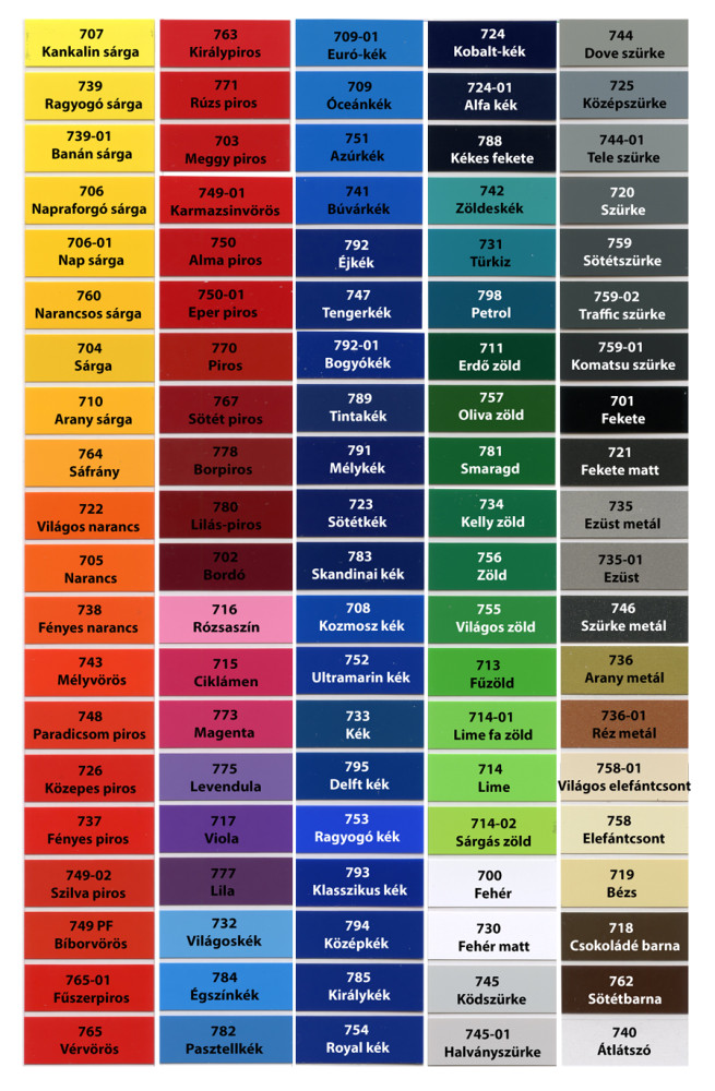Élettartam: fekete/fehér 8 év, színesek 7 év, metál 5 év