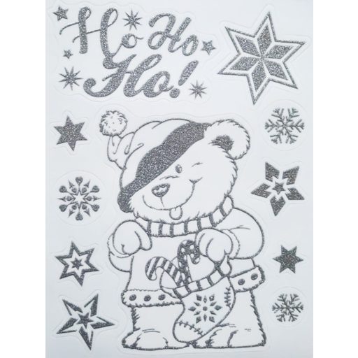 Ho-ho-ho, ezüst csillámos karácsonyi ablakmatrica