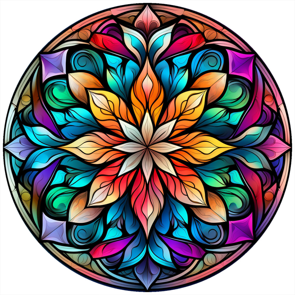 Káprázatos színek mandalája, ólomüveg hatású ablakmatrica