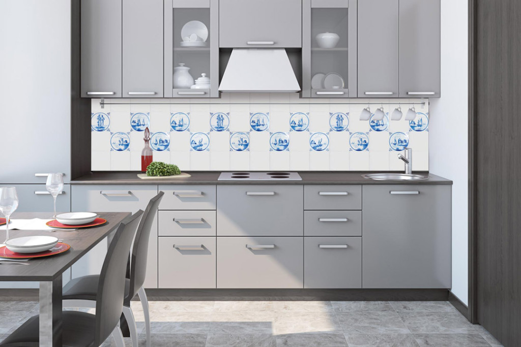 Kék csempeminta, konyhai matrica hátfal, 260 cm