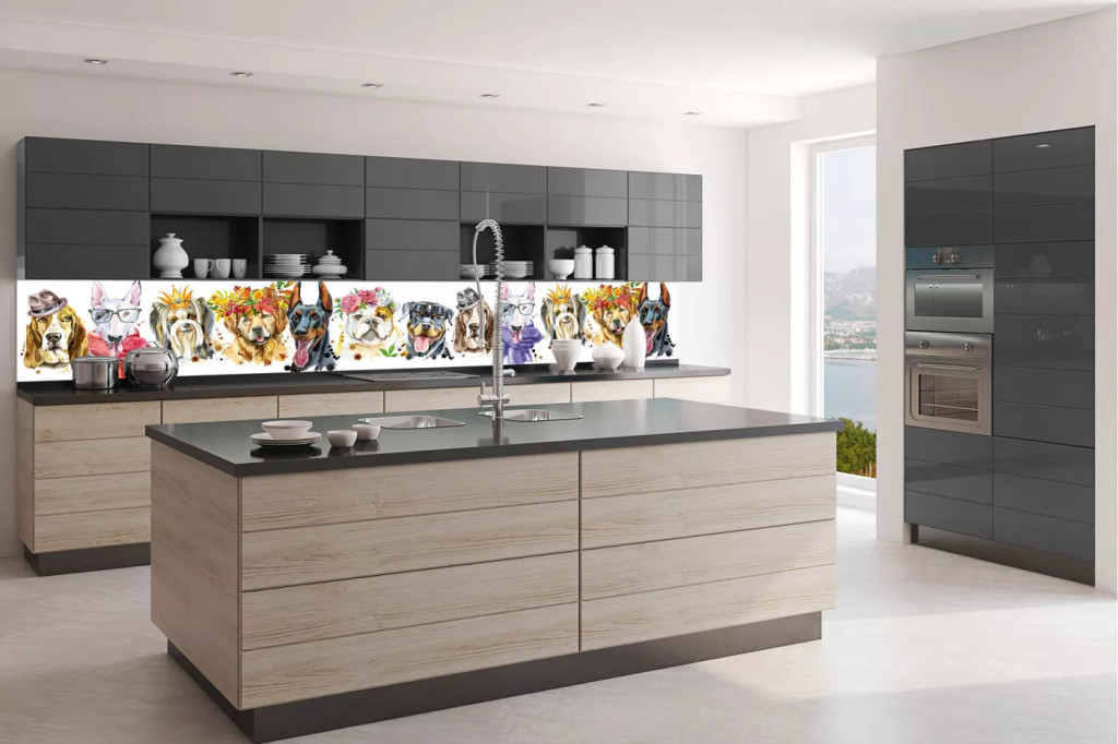 Kutyák portréja, konyhai matrica hátfal, 350 cm