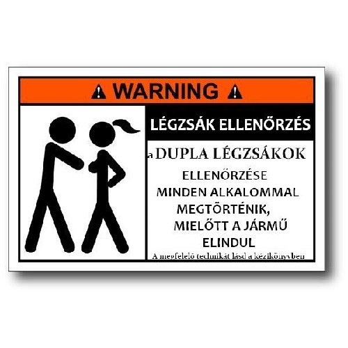 Légzsák ellenőrzés, vicces autómatrica hátsó szélvédőreMérete: 16 x 10 cmAnyaga: vinyl colorA matricát kérésre más méretben is elkészítjük