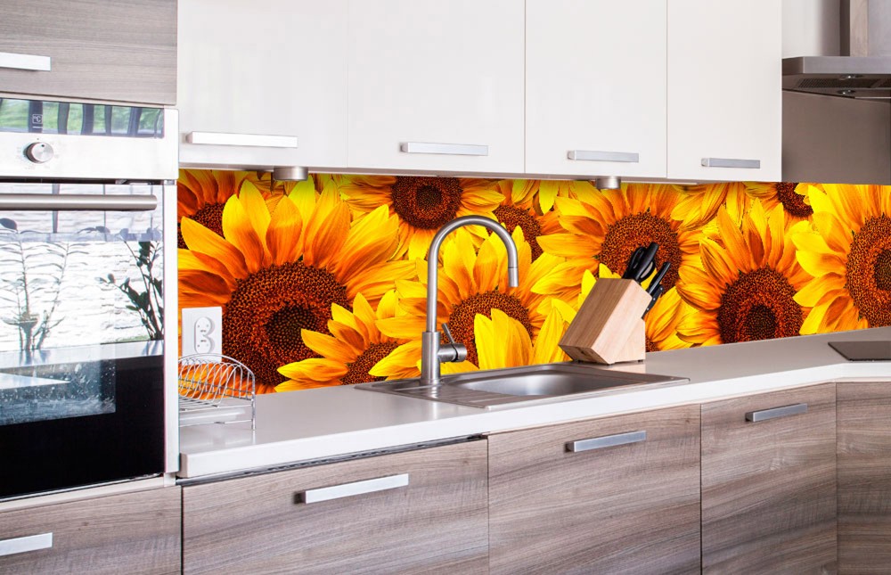 Napraforgó virágok, konyhai matrica hátfal, 260 cm
