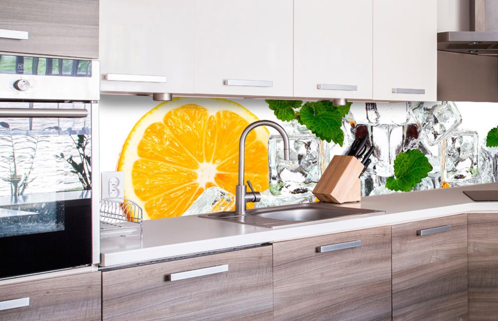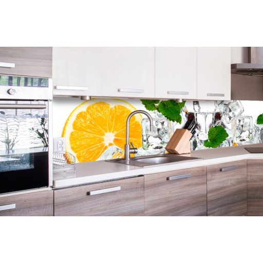 "> Narancs jégkockákkal, konyhai matrica hátfal, 260 cm - Öntap