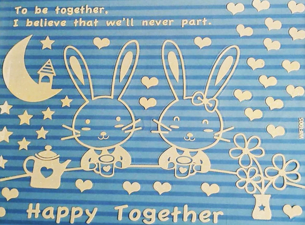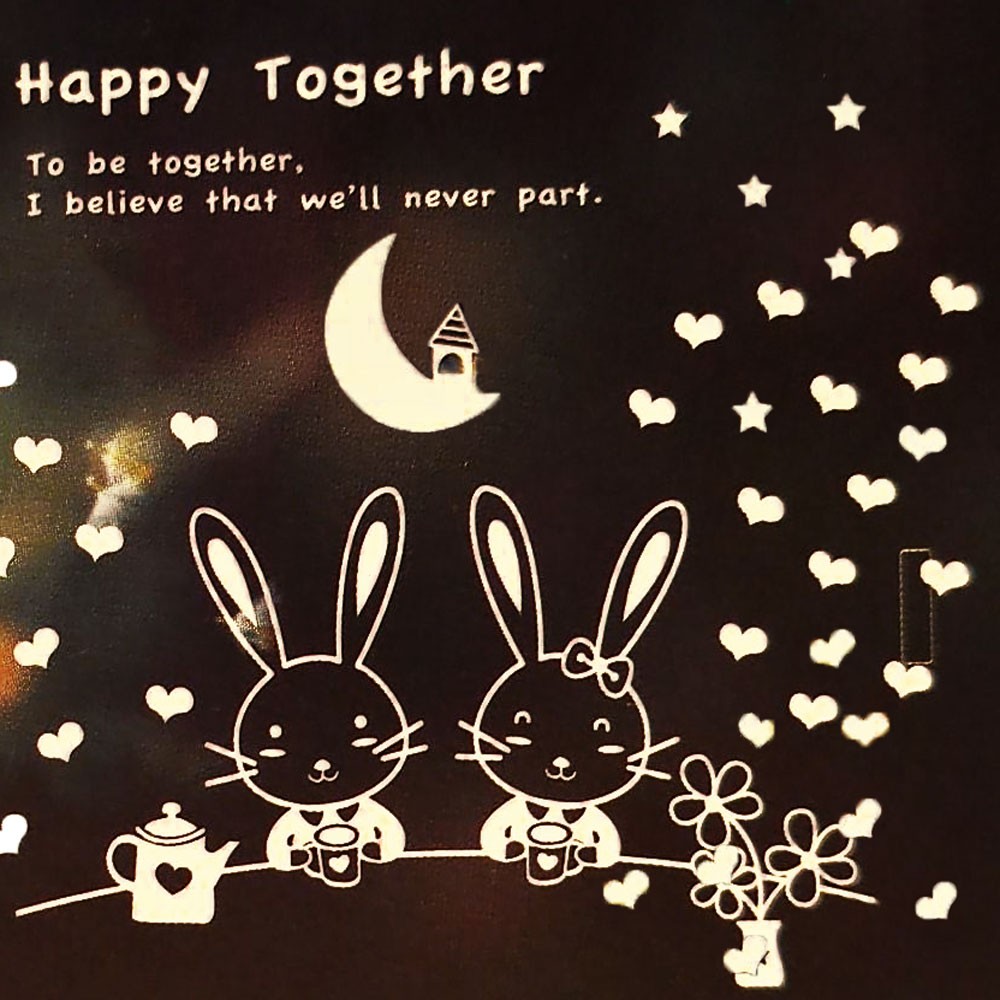 Éjjel világító, csillámos nyuszis ablakmatrica