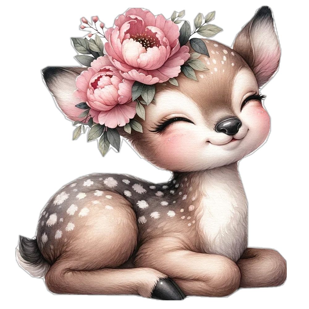 Őzike bazsarózsával, ragasztómentes ablakmatrica