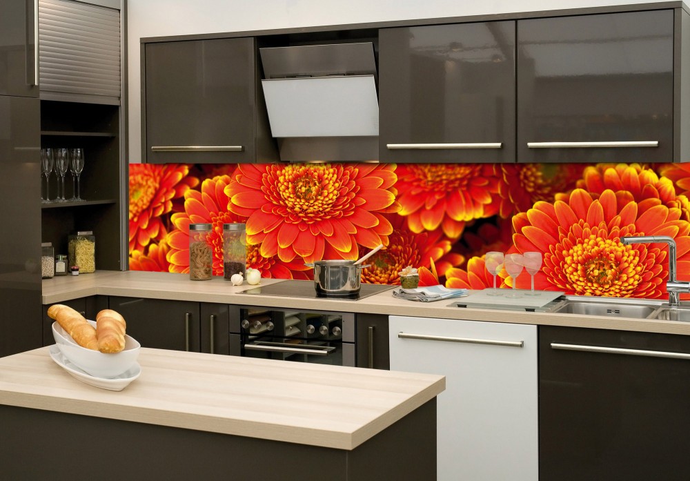 "> Piros virágok, konyhai matrica hátfal, 260 cm - Öntapadós De