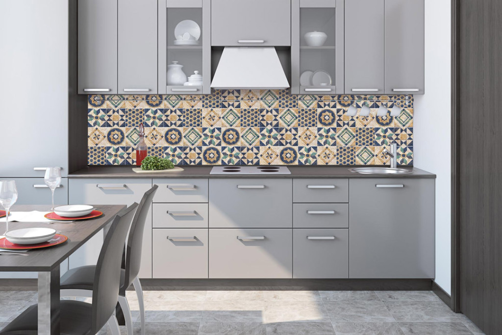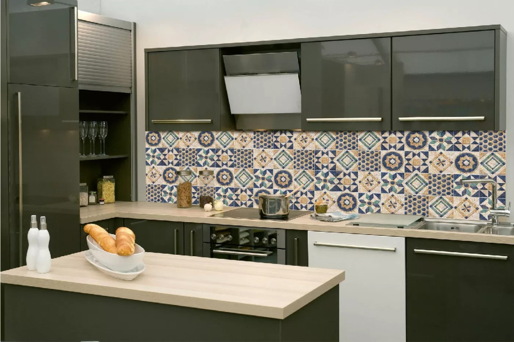 Portugál csempeminta, konyhai matrica hátfal, 260 cm