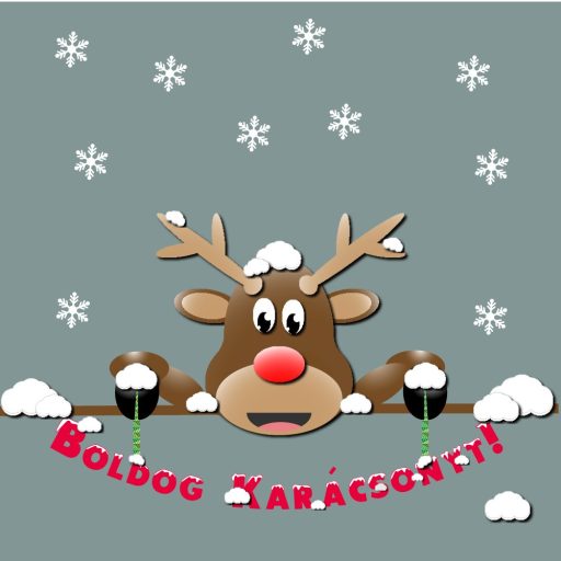 Rénszarvas felirattal, karácsonyi dekorációs matrica ablakra vagy kirakatra