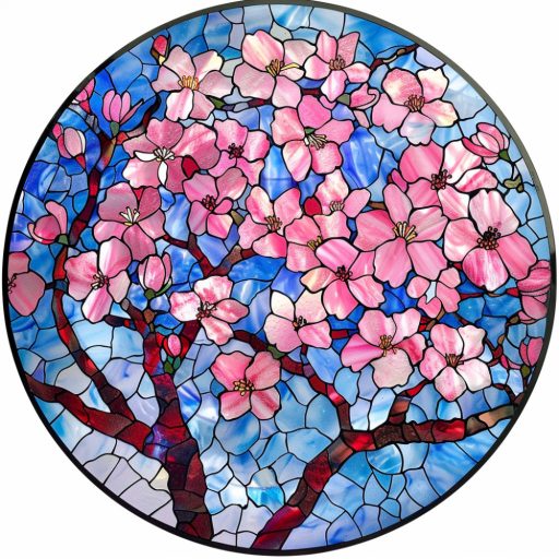 Rózsaszín cseresznyevirágzás, ólomüveg hatású ablakmatrica