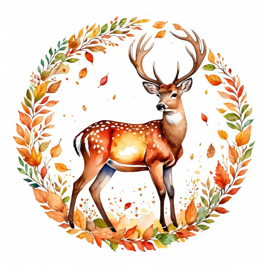 Szarvas hulló falevelekkel, falmatrica