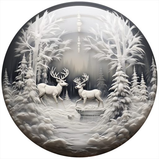 Szarvasok a téli erdőben, üveggömb hatású ablakmatrica