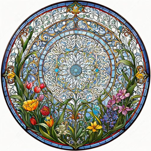 "> Színes virágok a minták előtt, ólomüveg hatású ablakmatrica