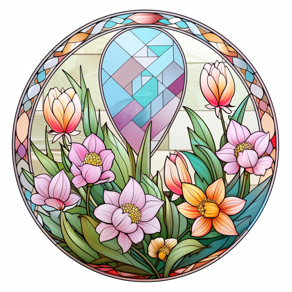 Tavaszi kedves virágok, ólomüveg hatású ablakmatrica