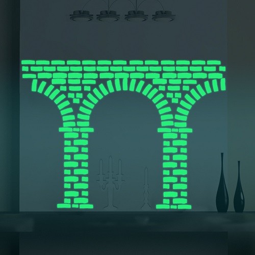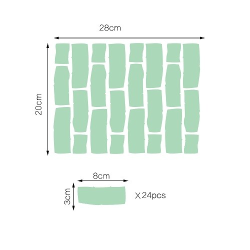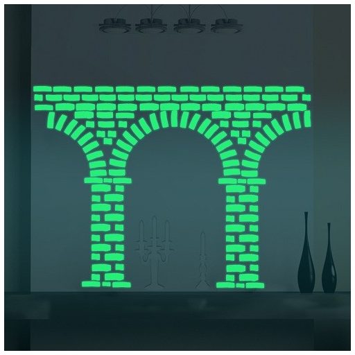 Téglák, éjjel világító falmatricaAz íven 24 db 8 x 3 cm-es (szélesség x magasság) tégla matrica van