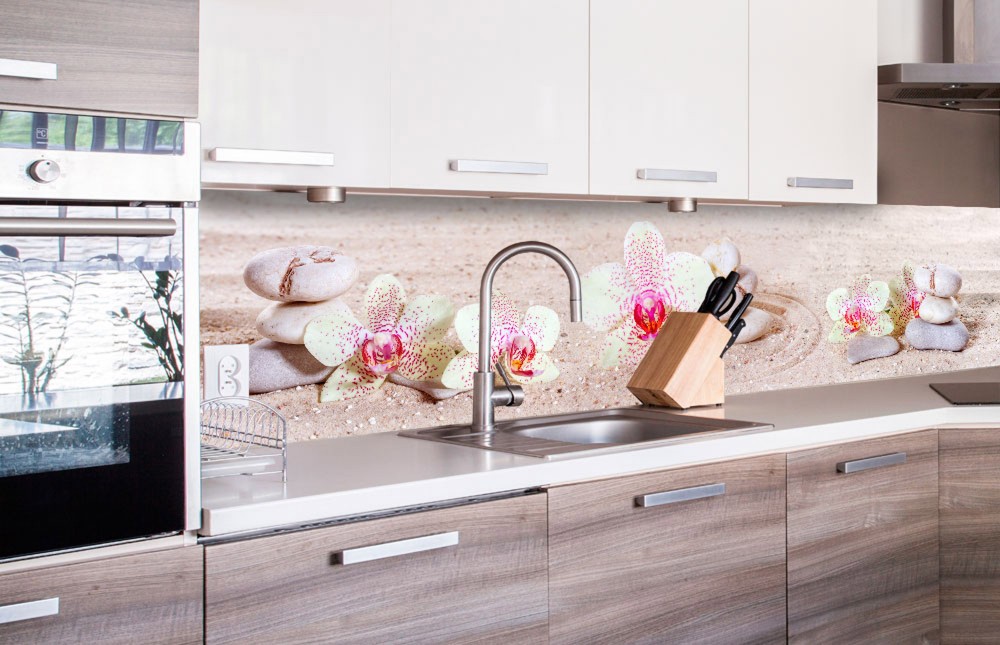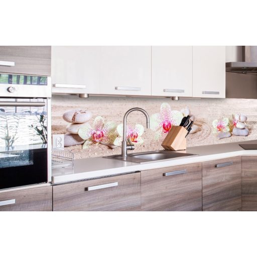 "> Tengerpart orchidea virágokkal, konyhai matrica hátfal, 260