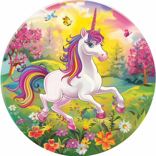 Unikornis a virágos réten, kör alakú falmatrica gyerekszobába