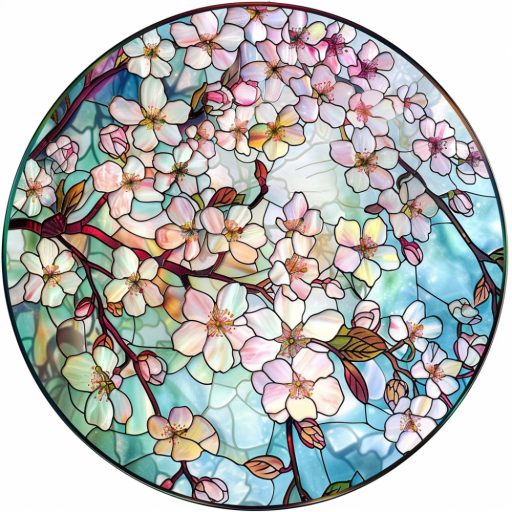 "> Világos rózsaszín cseresznyevirágok, ólomüveg hatású ablakma