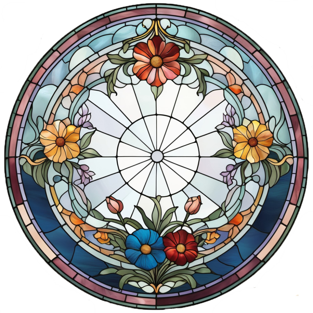 Virágok pasztell háttérrel, ólomüveg hatású ablakmatrica