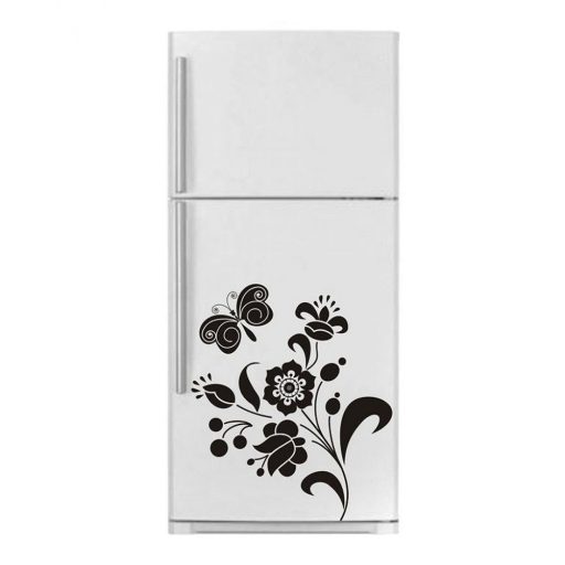 Virágok pillangóval, dekormatrica hűtőszekrényre